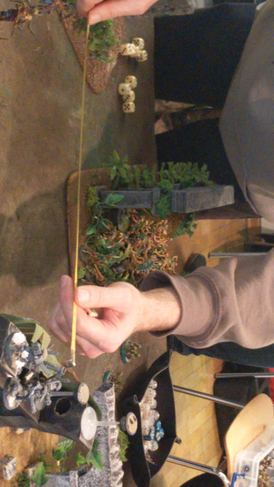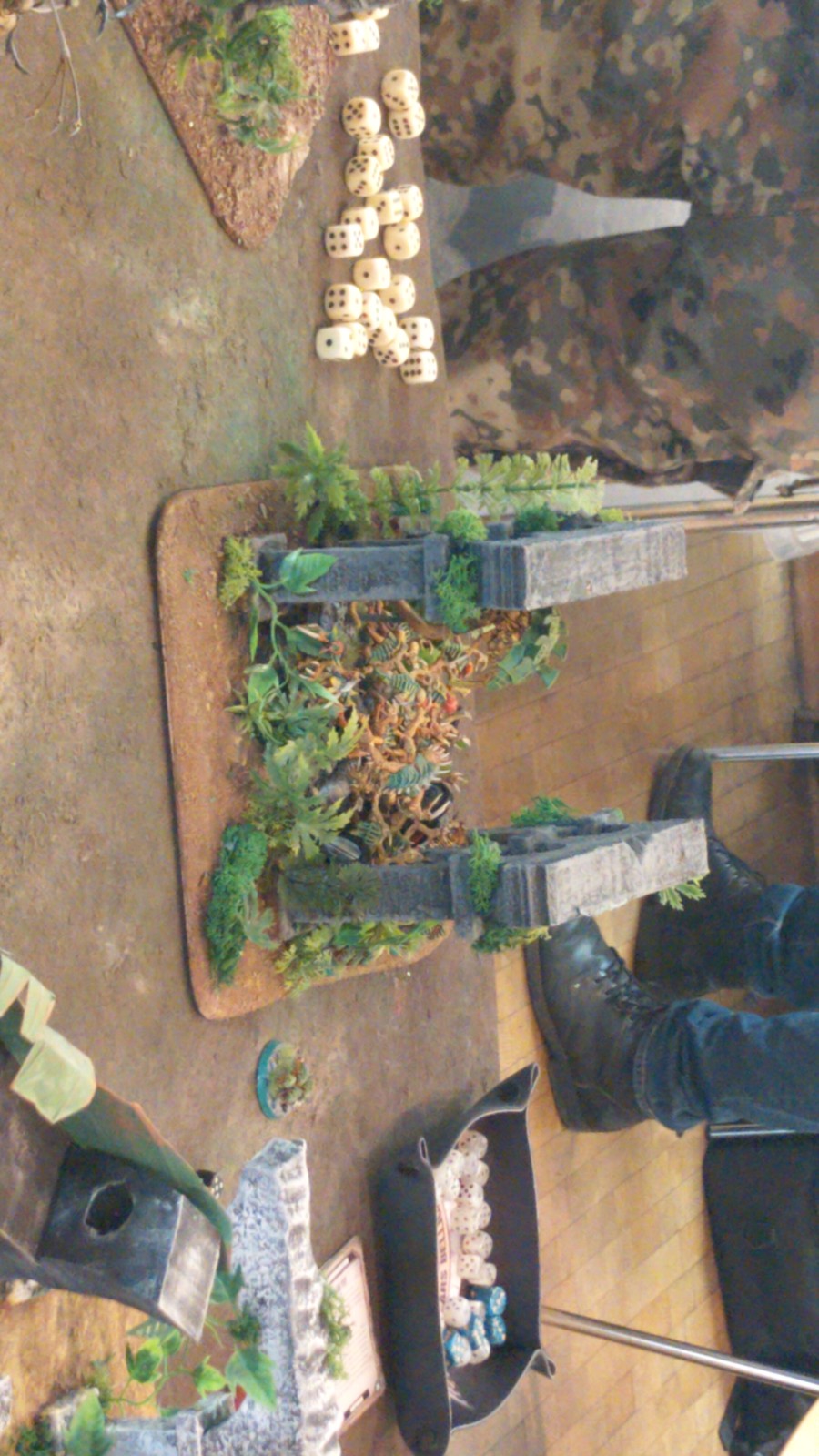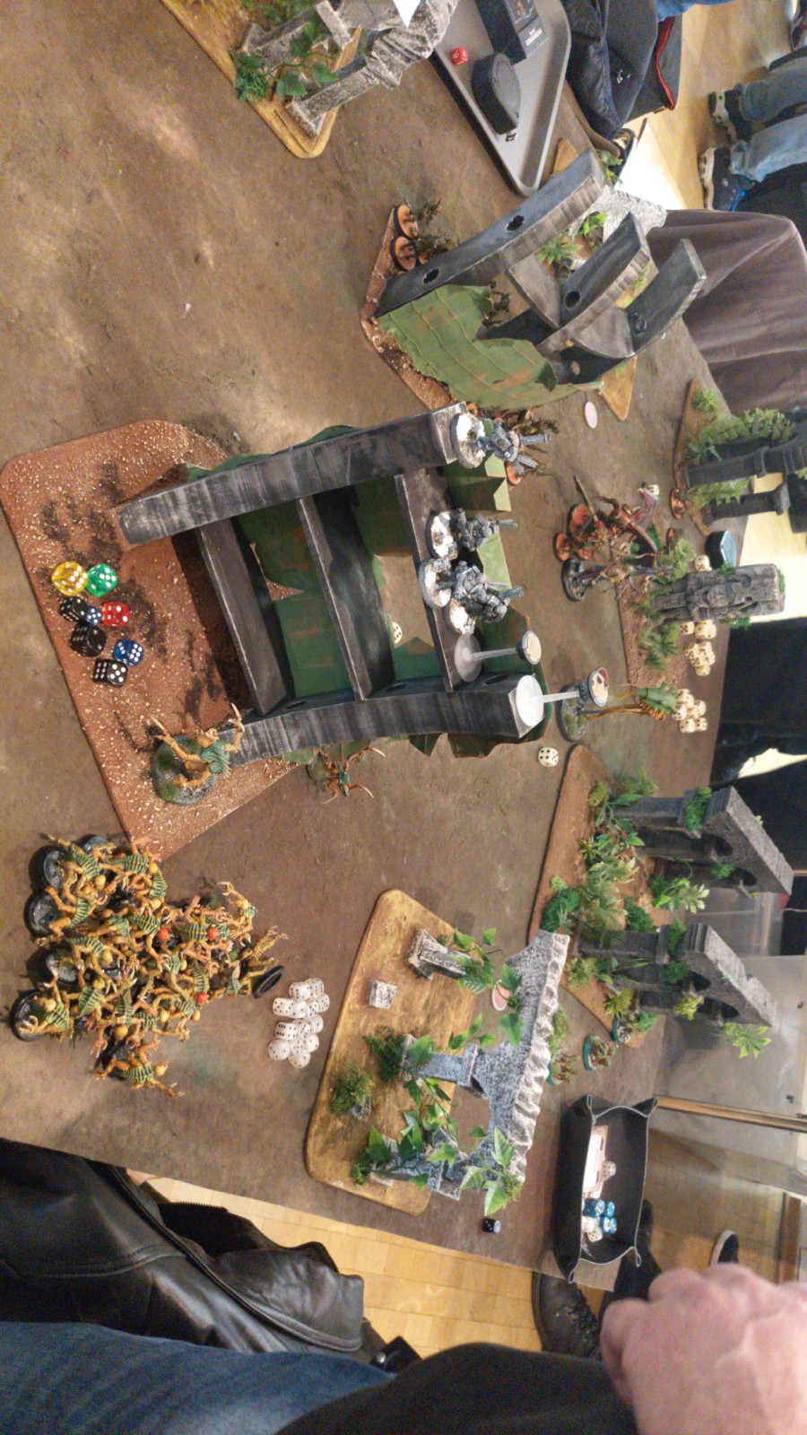 Da es jedoch um nichts ging war die Partie in sehr netter, freundlicher und ruhiger Atmosphäre. Der 25. Tabellenplatz war schließlich die Belohnung.Kevin und Bruce traten erneut als „der Lange und das Elend“ mit ihrer Siegerliste vom Nerdhammer Wintercup an (IronHands+Custodes). Nach einer furiosen ersten Partie gegen die Fists mit Custodes wurde der Erfolgsweg in der zweiten Partie durch unerwartet zähe Sisters in Verbund mit Custodes knapp verloren. Im dritten Spiel erwarteten sie schlussendlich eine Necron+Ironhands Liste, die trotz aller Versuche nicht überwunden werden konnte und ebenfalls abgegeben wurde. Ein noch solider 30. Platz kam am Ende heraus.Oli und Wolf traten erwartungsgemäß als (B)ärtige (S)pacewolves und (K)äfer mit Tyraniden und Spacewolves in ihrem ersten gemeinsamen großen Turnier an. Trotz ihrer fehlenden Erfahrungen schafften sie es, das erste Spiel klar zu dominieren und setzten sich wohlverdient gegen eine Kombination der DeathGuard mit ChaosSpaceMarines durch.